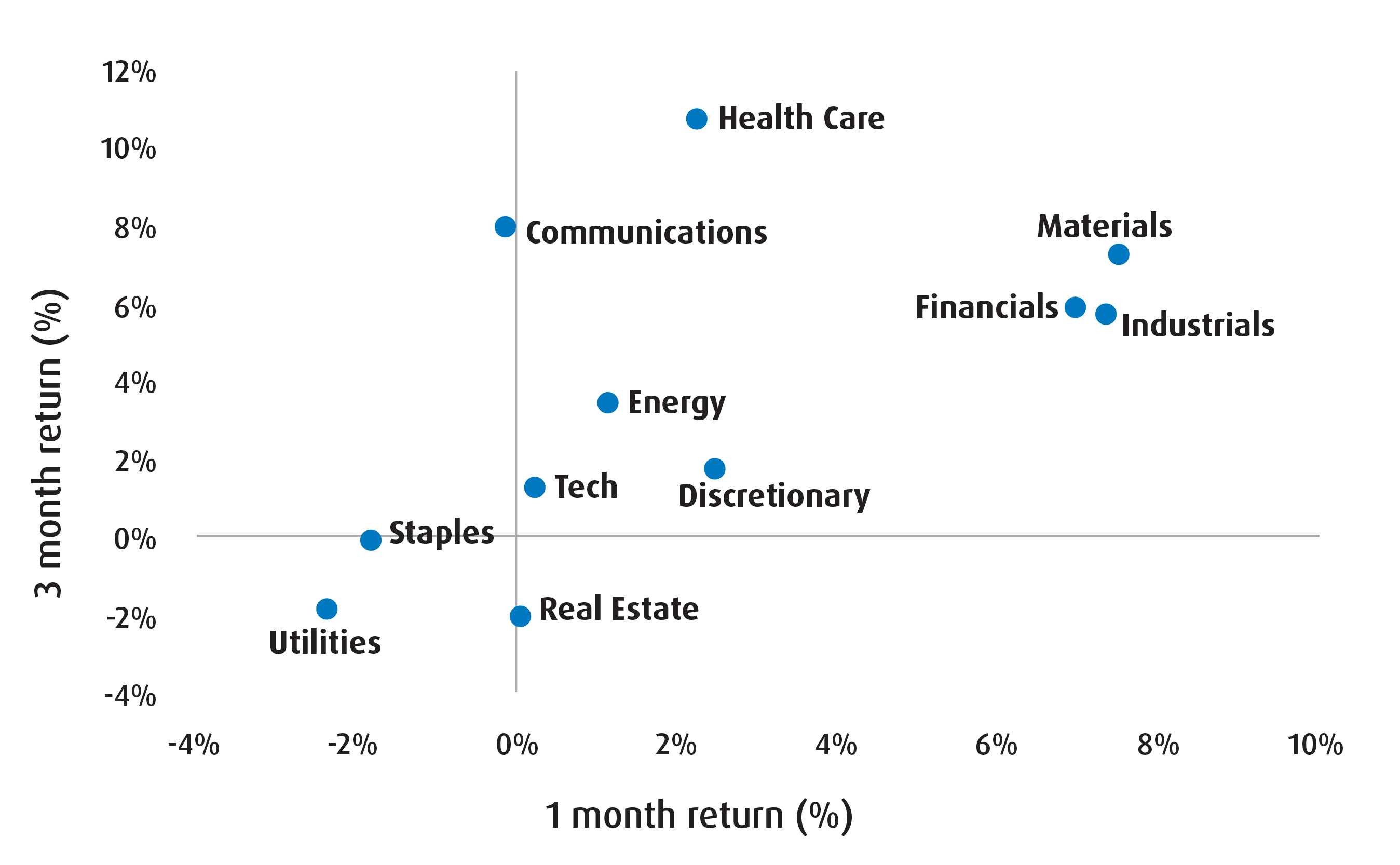 Jan 15, 2026- It’s the beginning of the year and we’re witnessing a rotation into cyclicals. Industrials and Materials were up over 7% in the past month. Utilities and Consumer Staples were down close to 2% during the same period (Chart 1). This reflects a risk-on tone as investors position for growth.