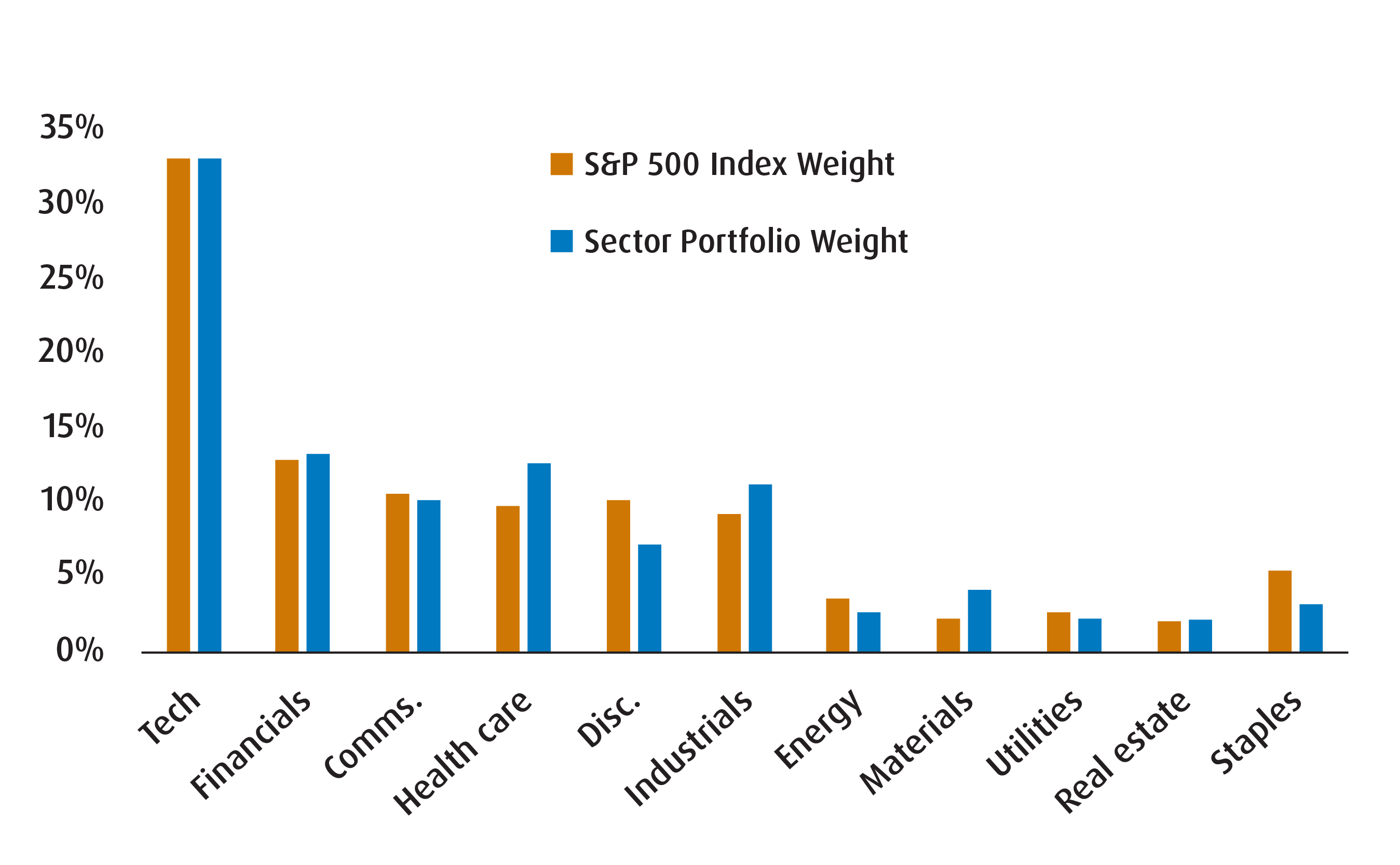 | Tech | 32.98% | 33.00% | 0.02% | Neutral | -2.00% |