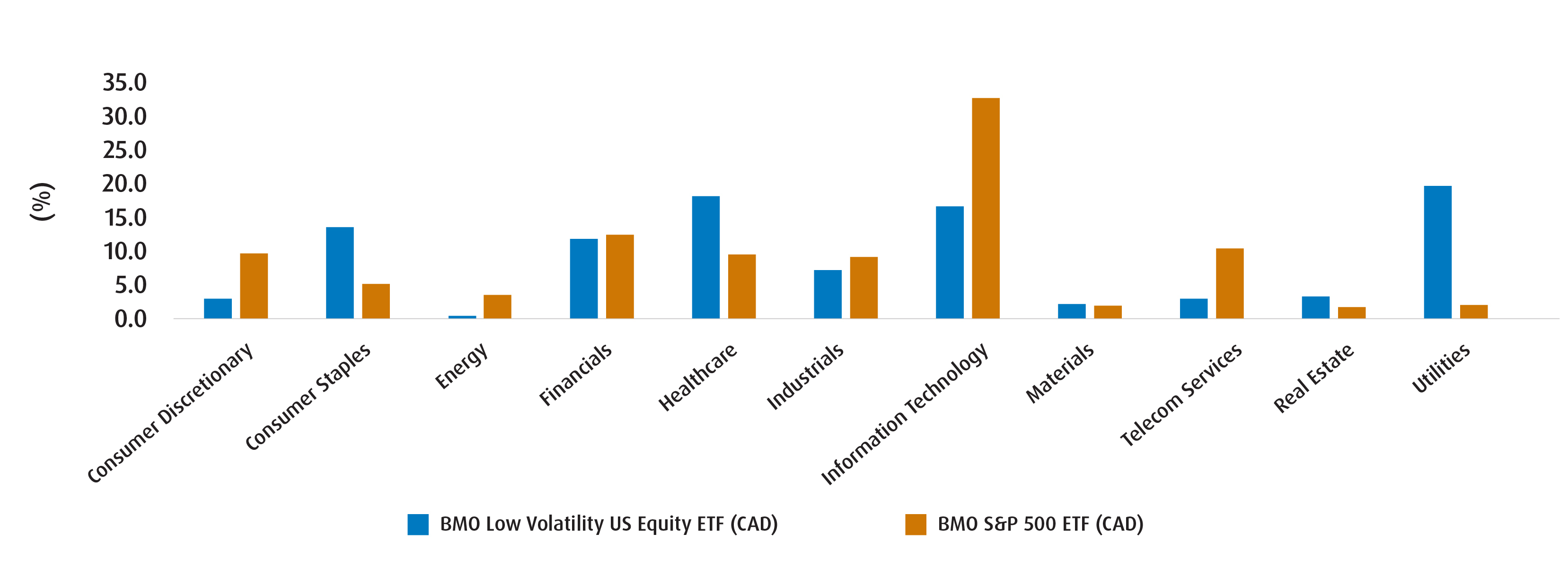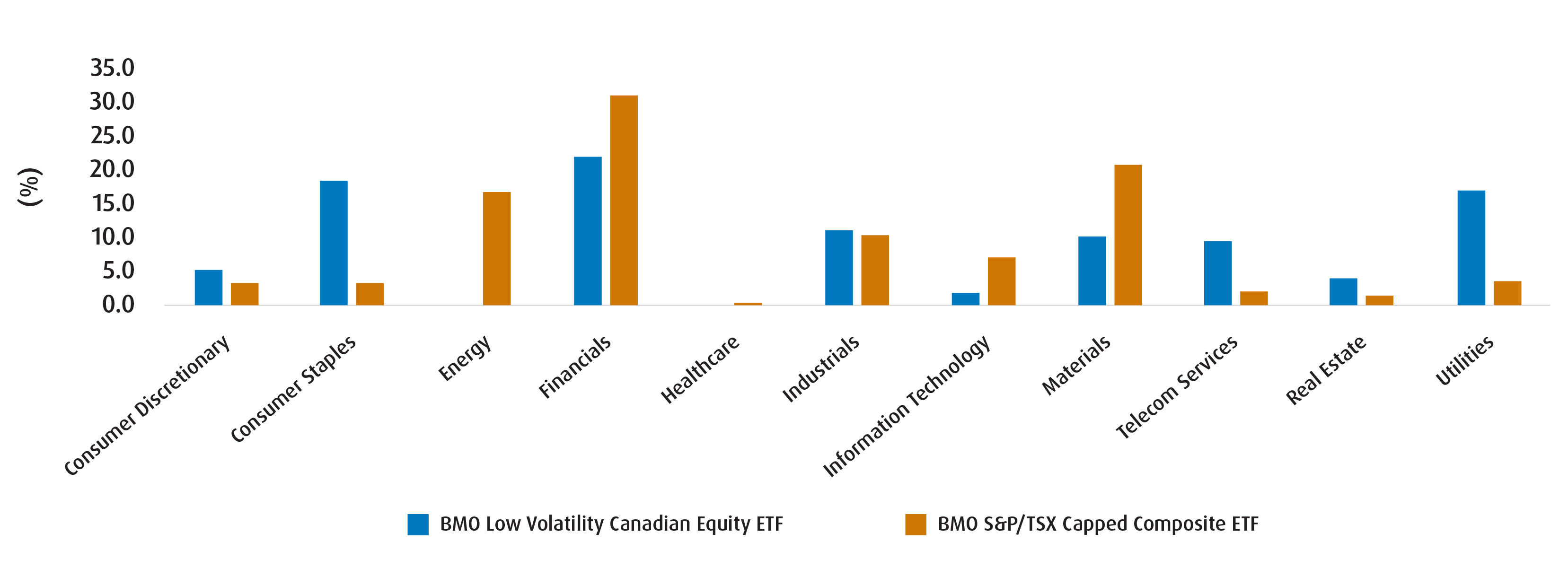 BMO’s low volatility equity ETFs seek to reduce portfolio swings by investing in stocks that have historically been less sensitive to broad market movements. BMO uses a beta‑based selection process, ranking stocks by historical beta relative to the market and constructing portfolios with lower‑beta names, while imposing sector and individual security constraints to avoid excessive concentration. As a result of the screening methodology, these ETFs tend to be tilted towards more defensive sectors.
