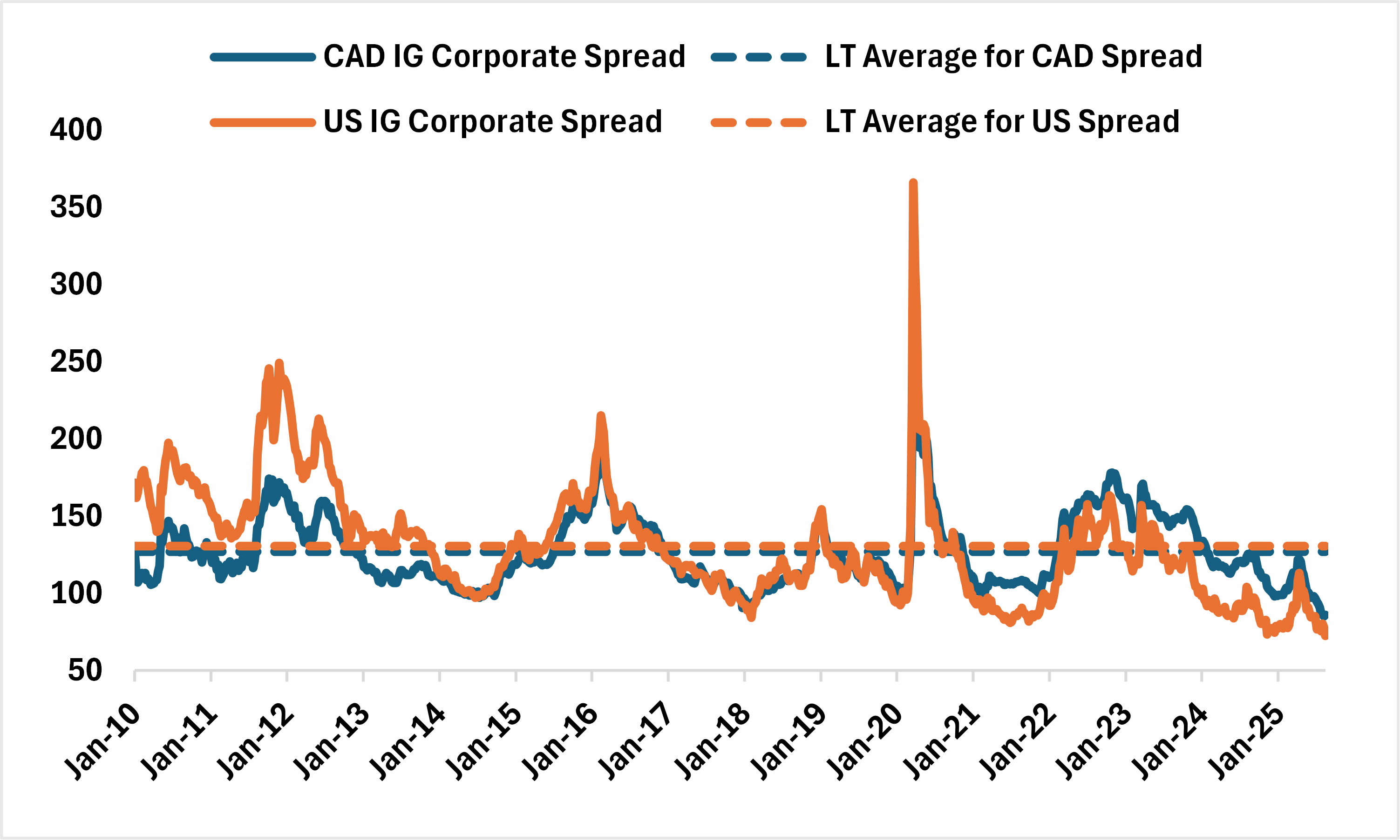 August 22, 2025There is no denying that spreads for both US and Canadian indices are incredibly tight right now (Chart 1). For context, the US IG index credit spread is currently at 75bps – well tighter than the post-financial crisis average of 128bps. Meanwhile, Canadian credit is currently at 88bps, which is below the long-term average of 126bps.
