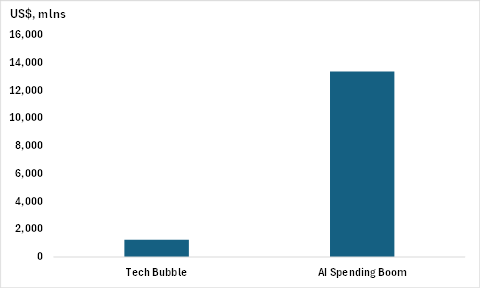 Chart 2 – Capex/EBITDA for Top US Tech Firms: Now vs. 2000 Tech Bubble