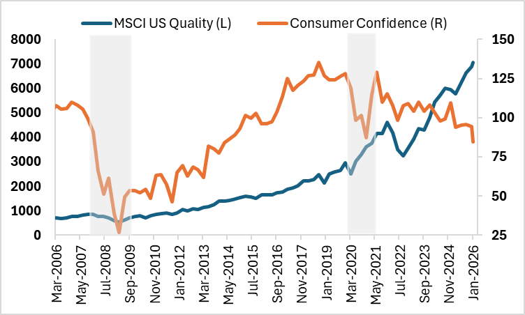 Chart 2 - US Consumer Confidence vs MSCI Quality Performance