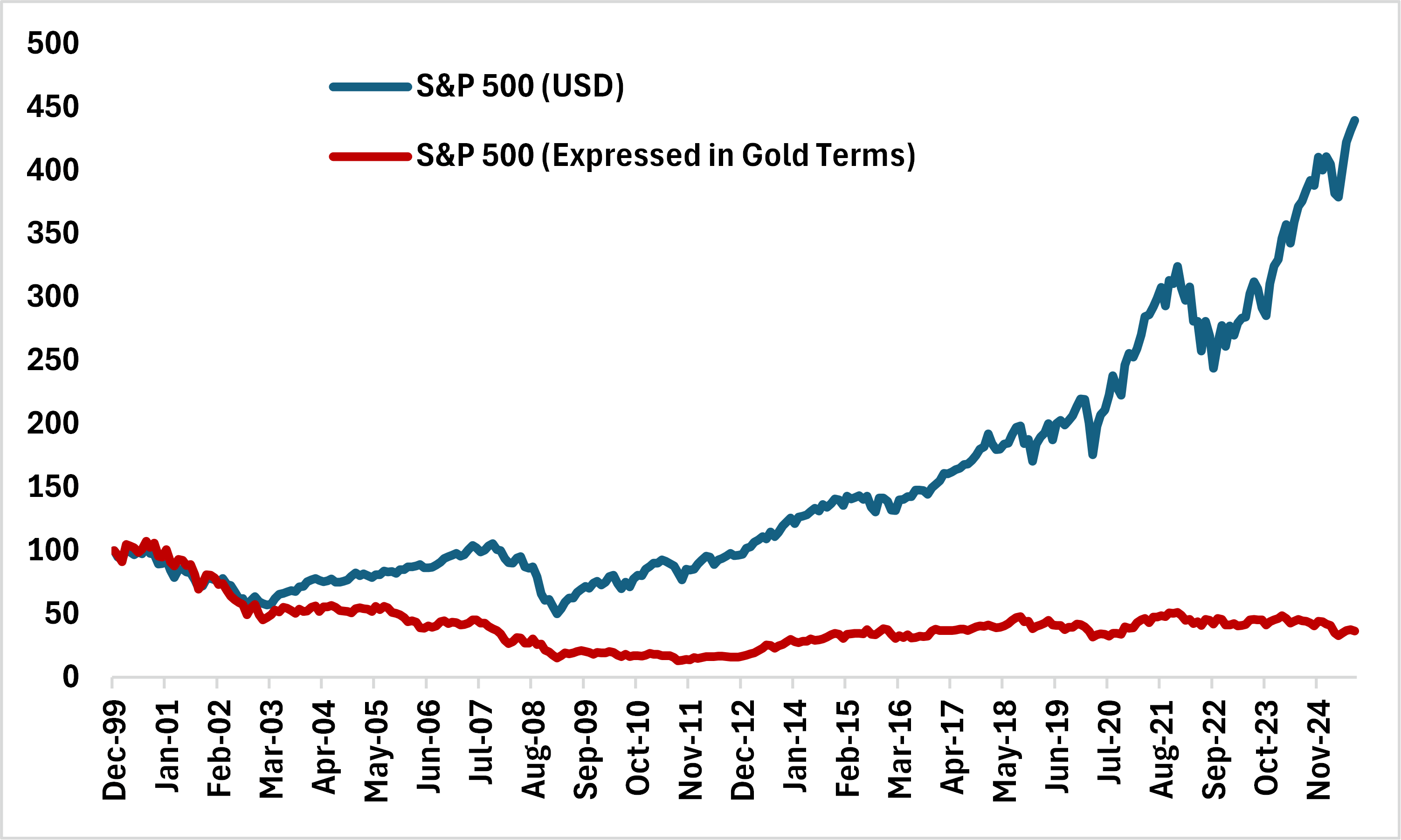 Chart 1 – The S&P 500 has Underperformed Relative to Gold Over the Past Decades