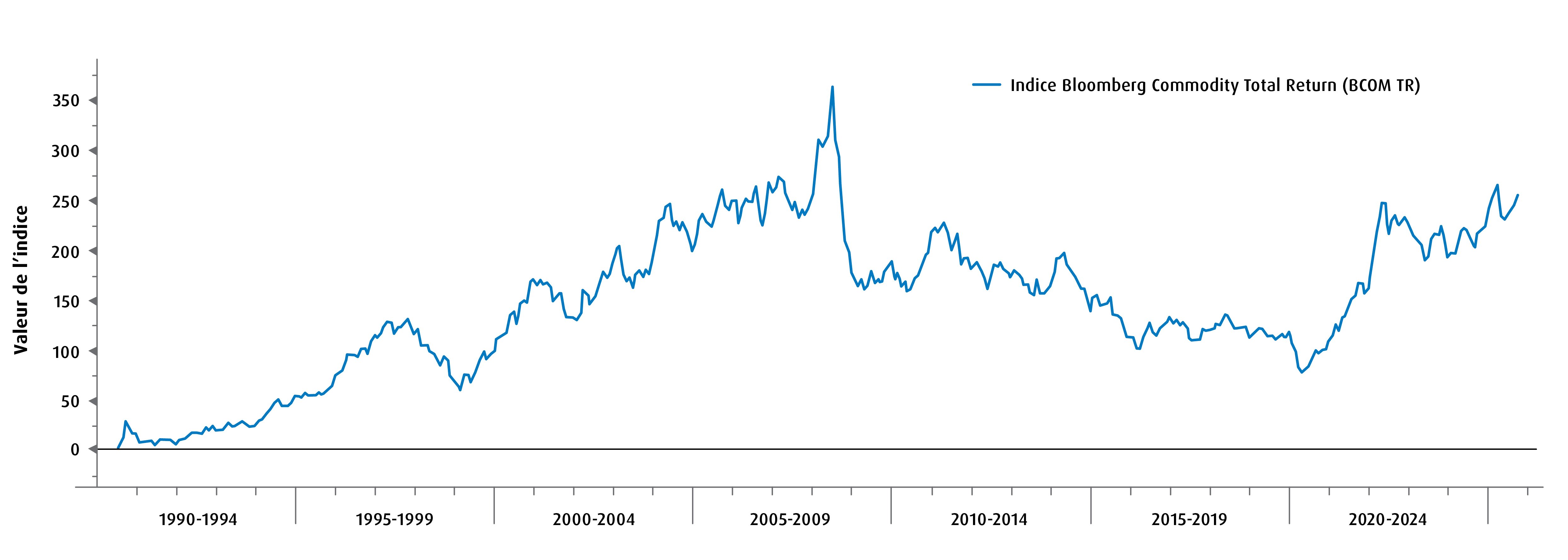 Les cycles des produits de base ont tendance à être longs, car les rajustements de l’offre sont lents. Il faut des années pour obtenir les permis et développer les mines. Les infrastructures énergétiques nécessitent des investissements en capital soutenus. La production agricole est de plus en plus influencée par la volatilité climatique.