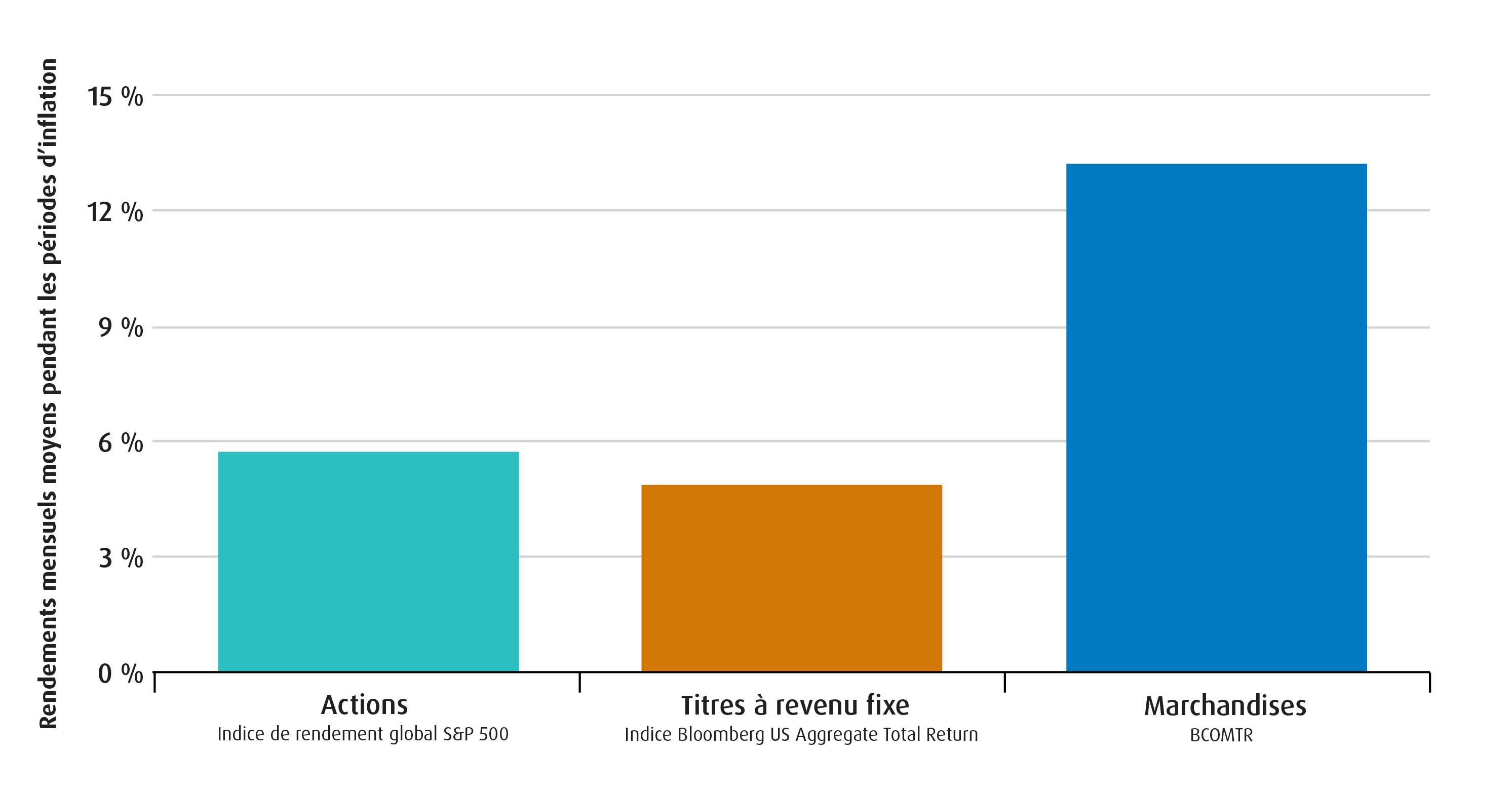 L’argument le plus convaincant en faveur des produits de base dans le contexte actuel est lié à l’inflation. Les nouveaux régimes inflationnistes ont historiquement exposé la fragilité des diversifications traditionnelles entre actions et obligations. En 2022, les actions et les obligations se sont retrouvées profondément en territoire négatif. À l’opposé, le Bloomberg Commodity Total Return Index (BCOM TR) a terminé l’année en hausse de 16 % (au 31 décembre 2025).