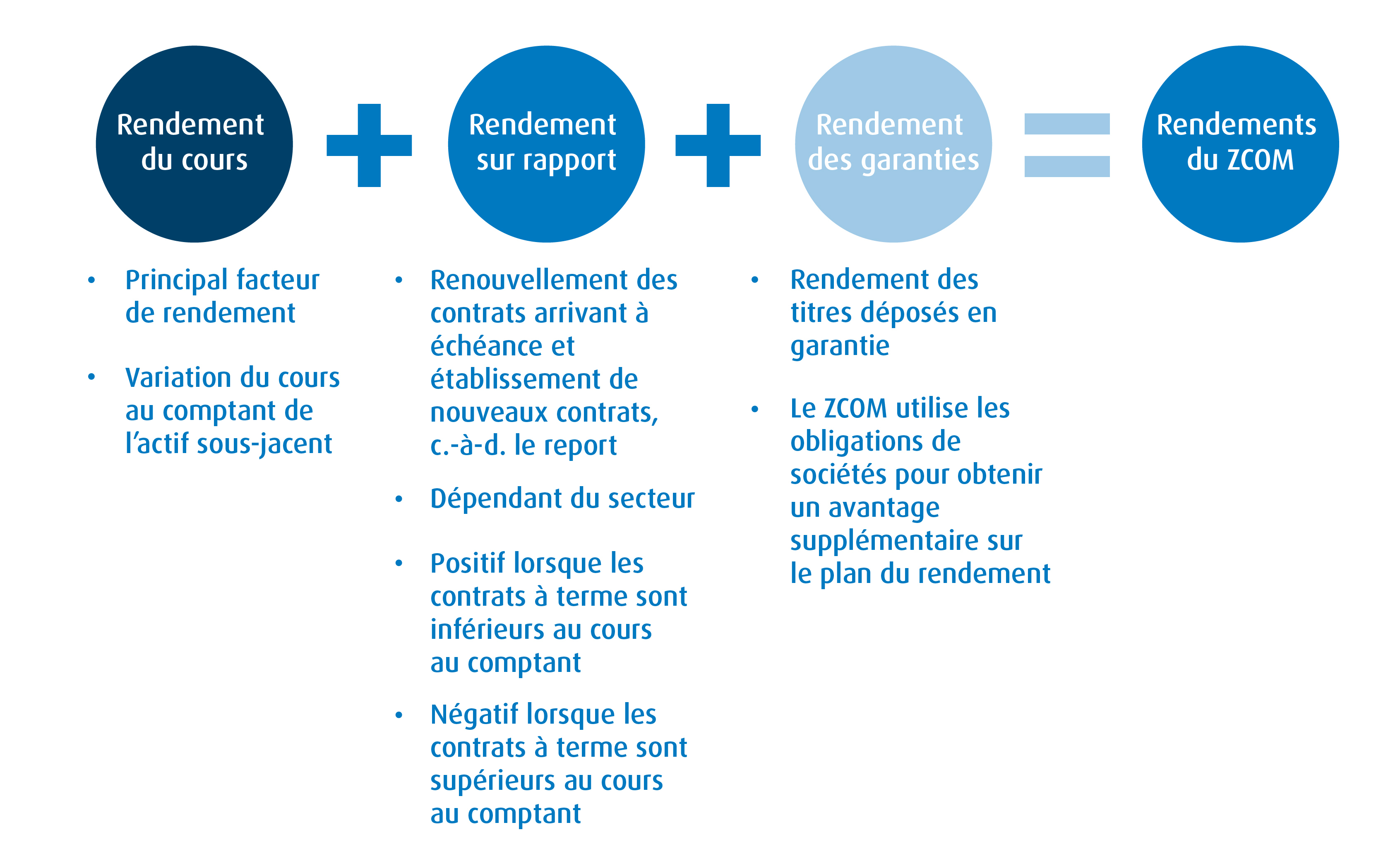 Les prix au comptant reflètent la dynamique immédiate de l’offre et de la demande. Le rendement sur report découle de la forme de la courbe des contrats à terme standardisés, ce qui profite aux investisseurs lorsque les marchés sont en situation de déport, ce qui est courant en période de pénurie. Le rendement des garanties provient du rendement généré par les liquidités qui soutiennent l’exposition aux contrats à terme standardisés, ce qui devient de plus en plus pertinent dans un contexte de taux plus élevés. Voici comment le nouveau FNB BMO de produits de base généraux (symbole : ZCOM) utilise les trois leviers pour offrir aux investisseurs un profil de rendement complet (voir le diagramme 1).