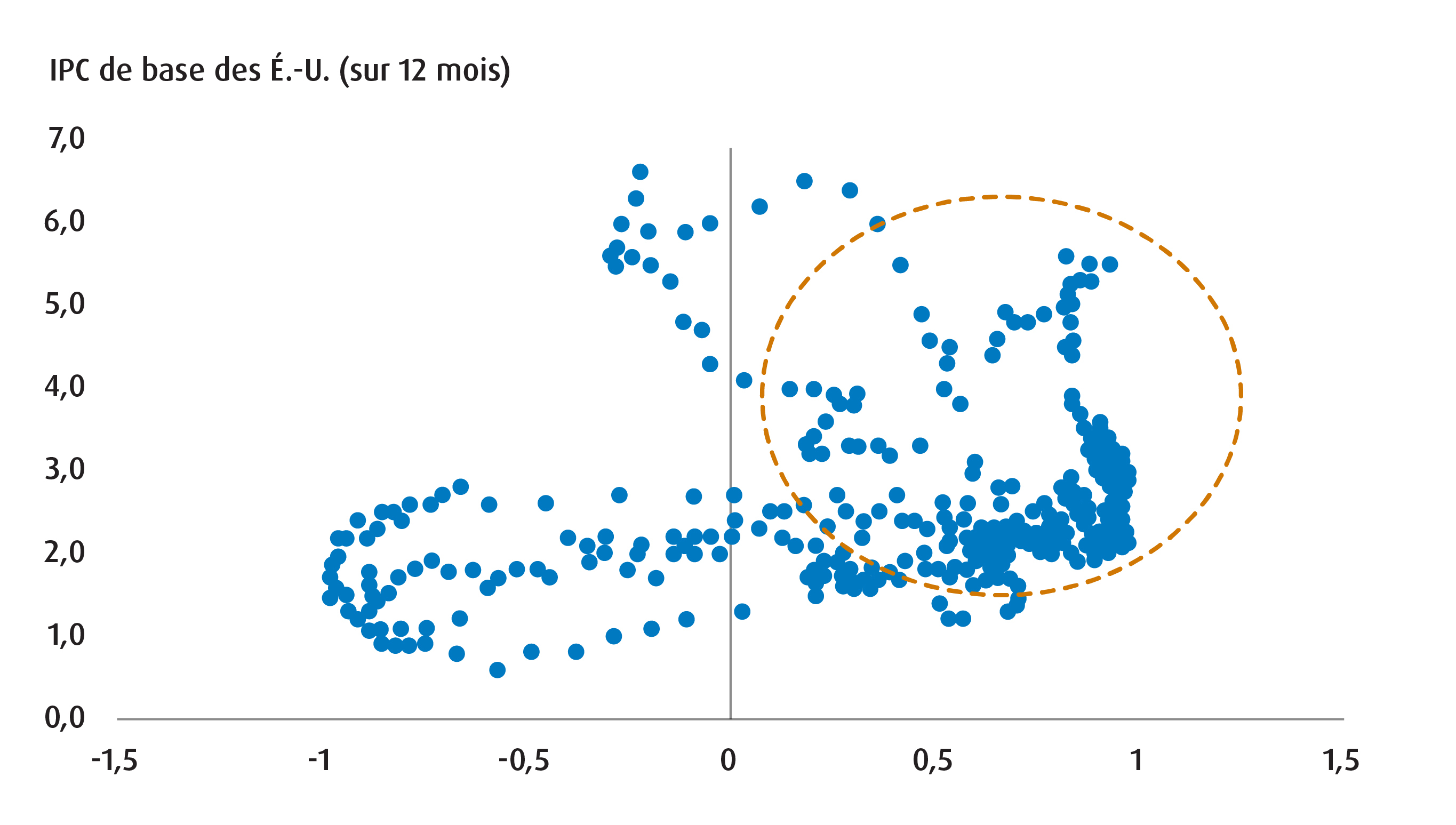 Arguments en faveur d’un abandon des portefeuilles 60/40 : Les actions et les obligations ont tendance à être davantage corrélées lorsque l’inflation de base est plus élevée
