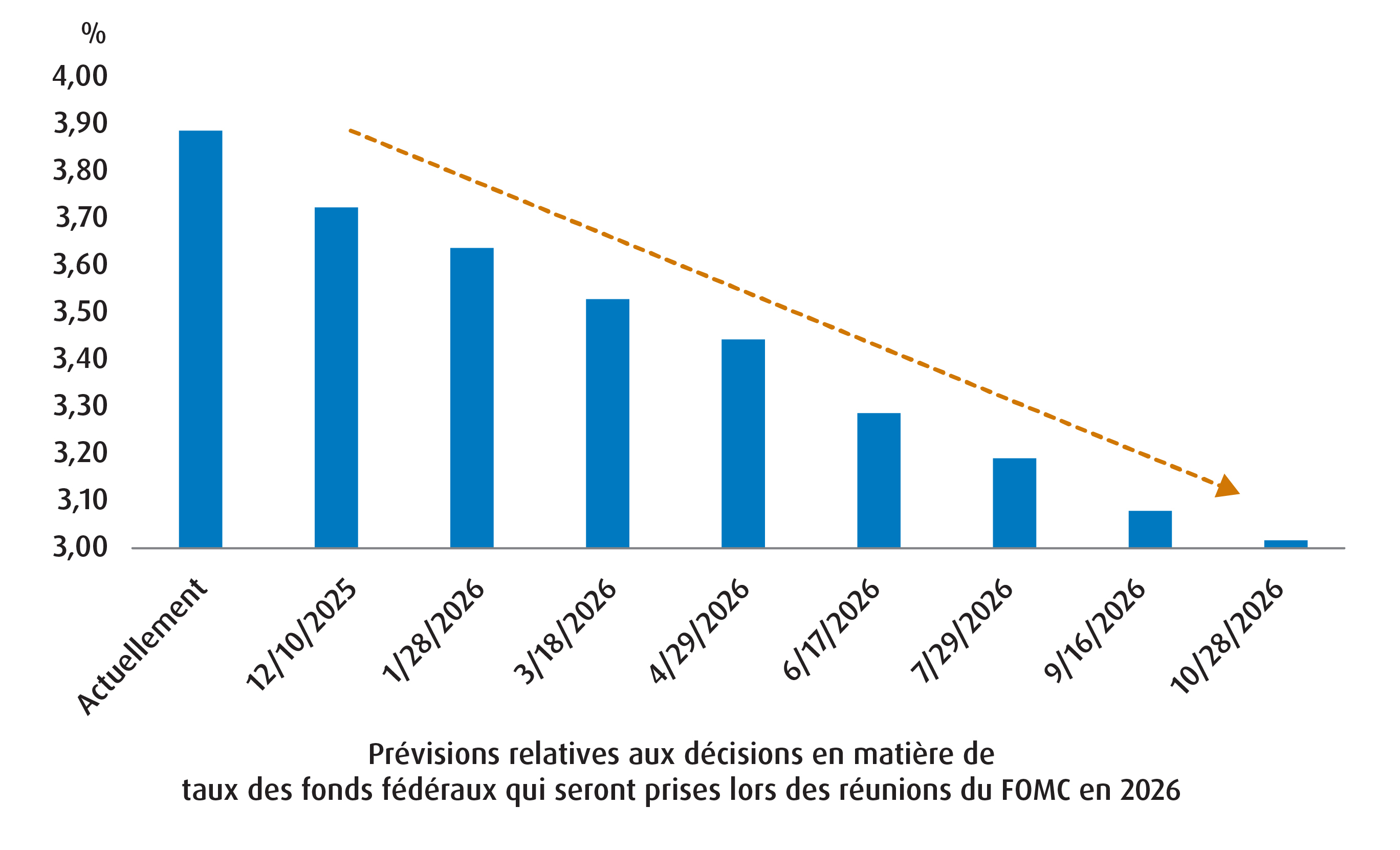 Graphique 1 – Taux des fonds fédéraux anticipés par le marché aux dates des réunions du FOMC en 2026