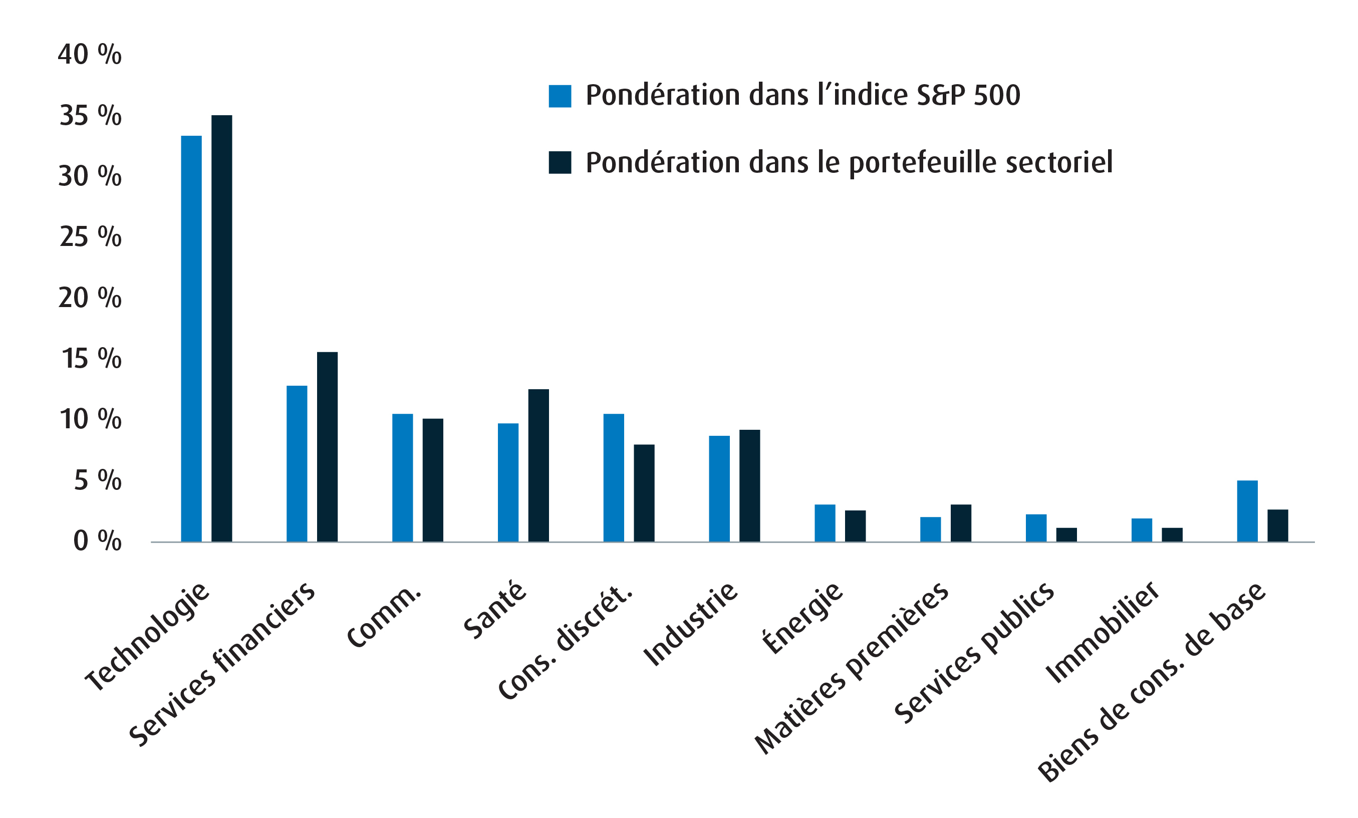 Graphique 4 – Pondération des portefeuilles FNB BMO sectoriels par rapport à l’indice S&P 500