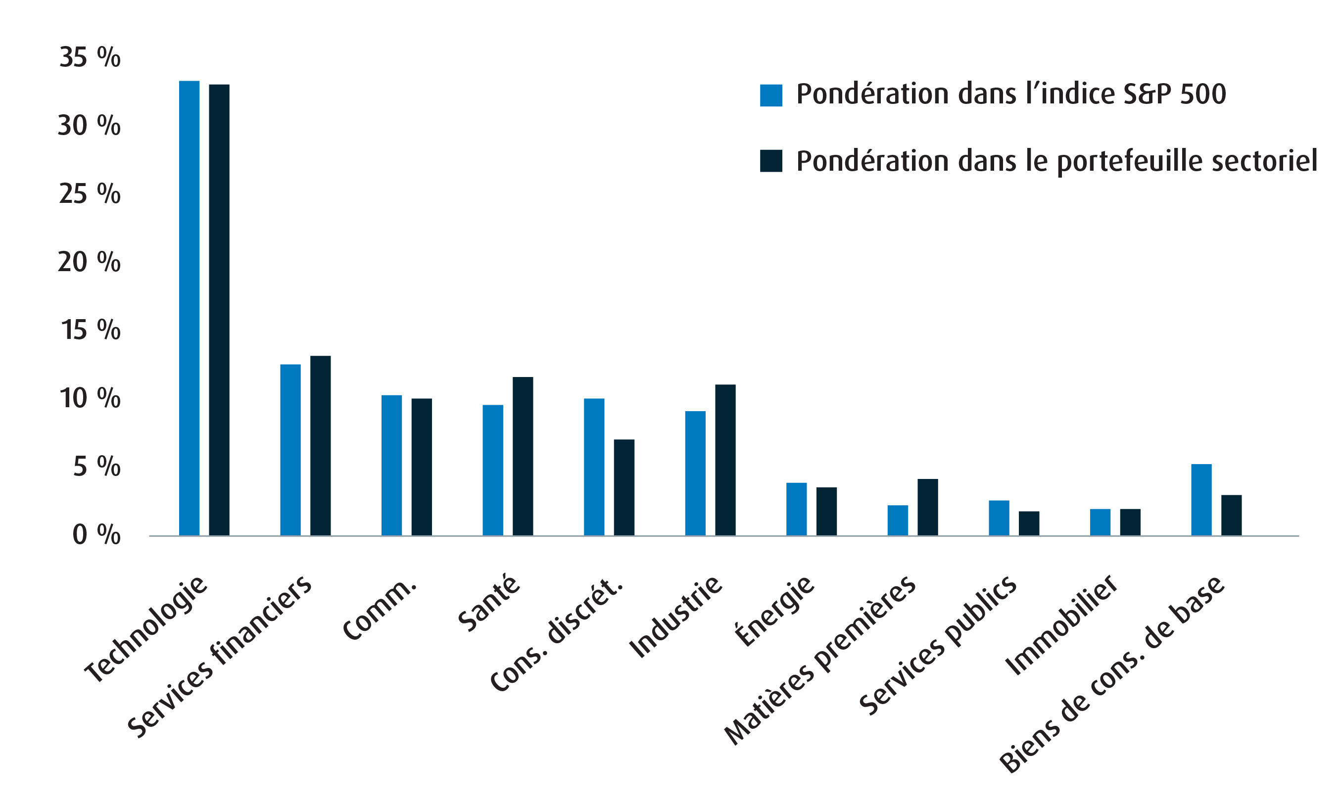 | Services financiers | 12,52 % | 13,00 % | 0,48 % | Neutral | 0.0% |