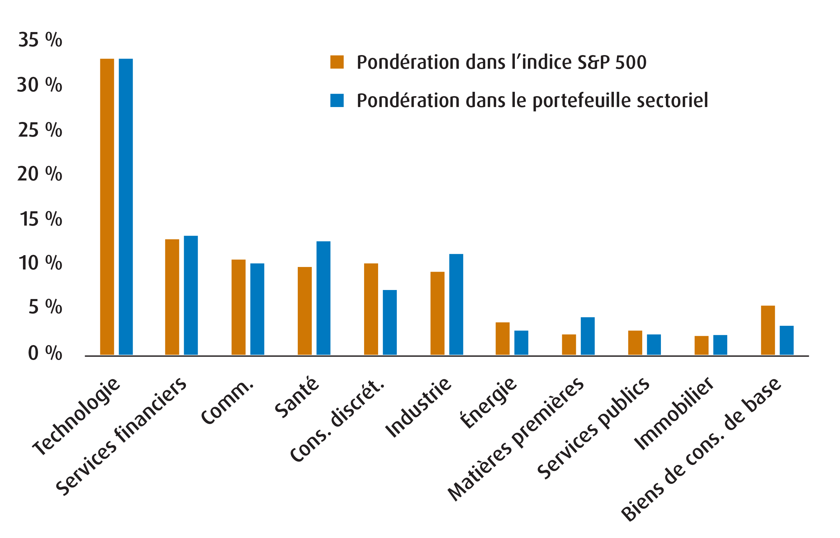 Graphique 4 – Pondération des portefeuilles FNB BMO sectoriels par rapport à l’indice S&P 500