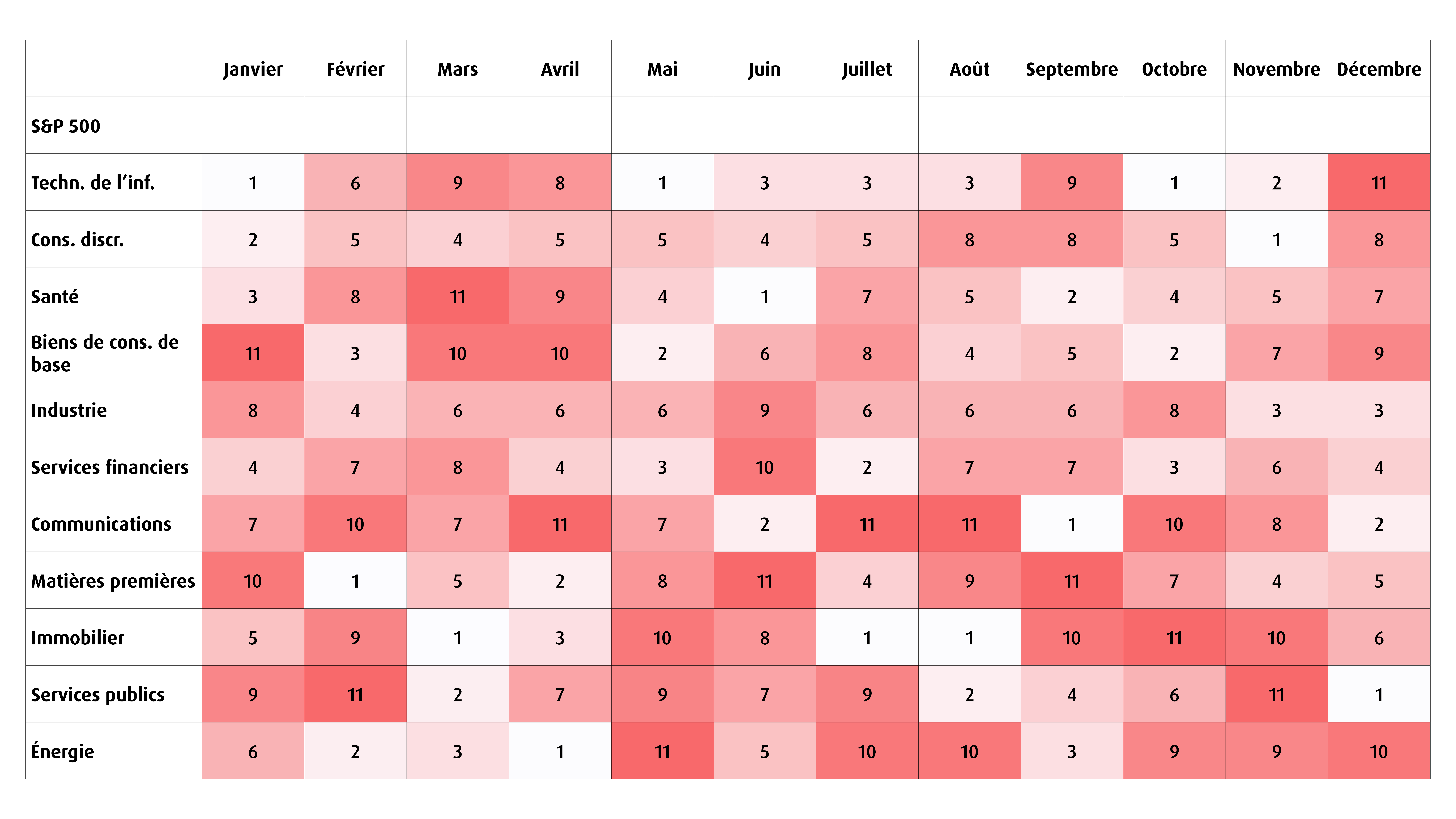 Graphique 6 – Graphique de saisonnalité (rang moyen au cours des 35 dernières années)