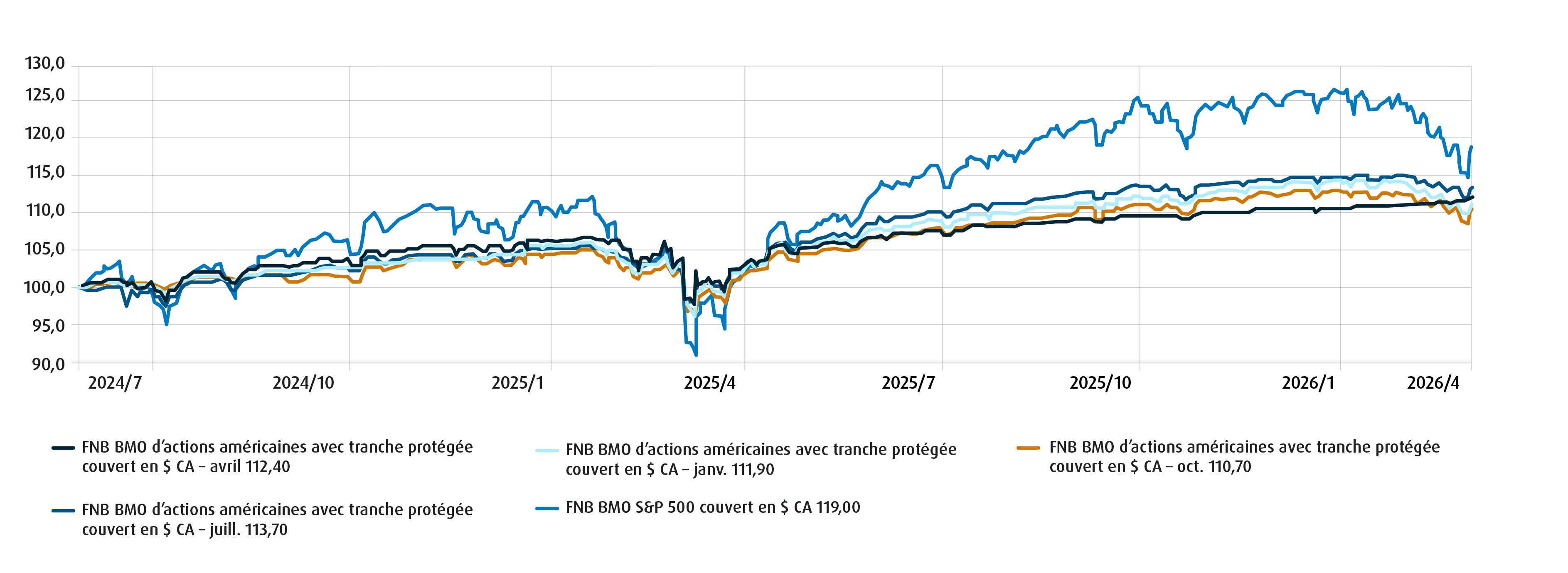 Dans la pratique, de nombreux portefeuilles combinent ces approches. Les FNB à faible volatilité peuvent servir de placement de base pour les investisseurs plus prudents, les FNB à dividendes peuvent être utilisés pour les investisseurs qui recherchent un équilibre entre la croissance et les flux de trésorerie et les FNB avec tranche protégée peuvent servir de base aux investisseurs prudents, ou être utilisés tactiquement lorsque l’incertitude est élevée.