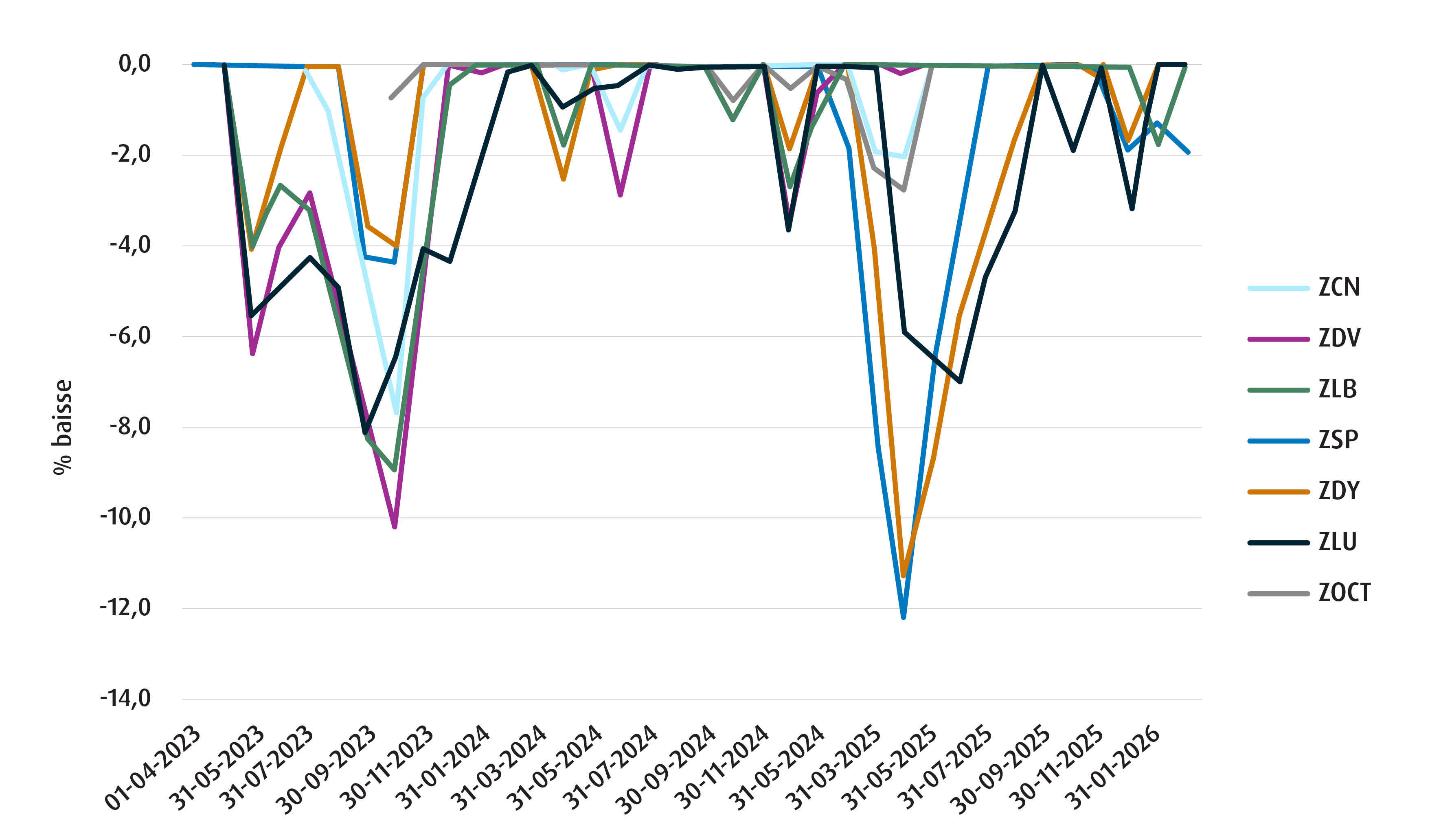 ZLU et ZSP Baisse plus faible, ratio d’encaissement des baisses et écart-type
